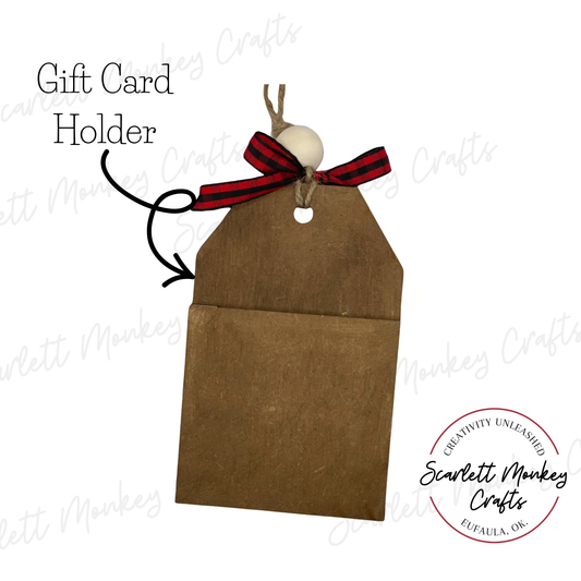 "Merry & Bright” Ornament with Gift Card Holder - Painted