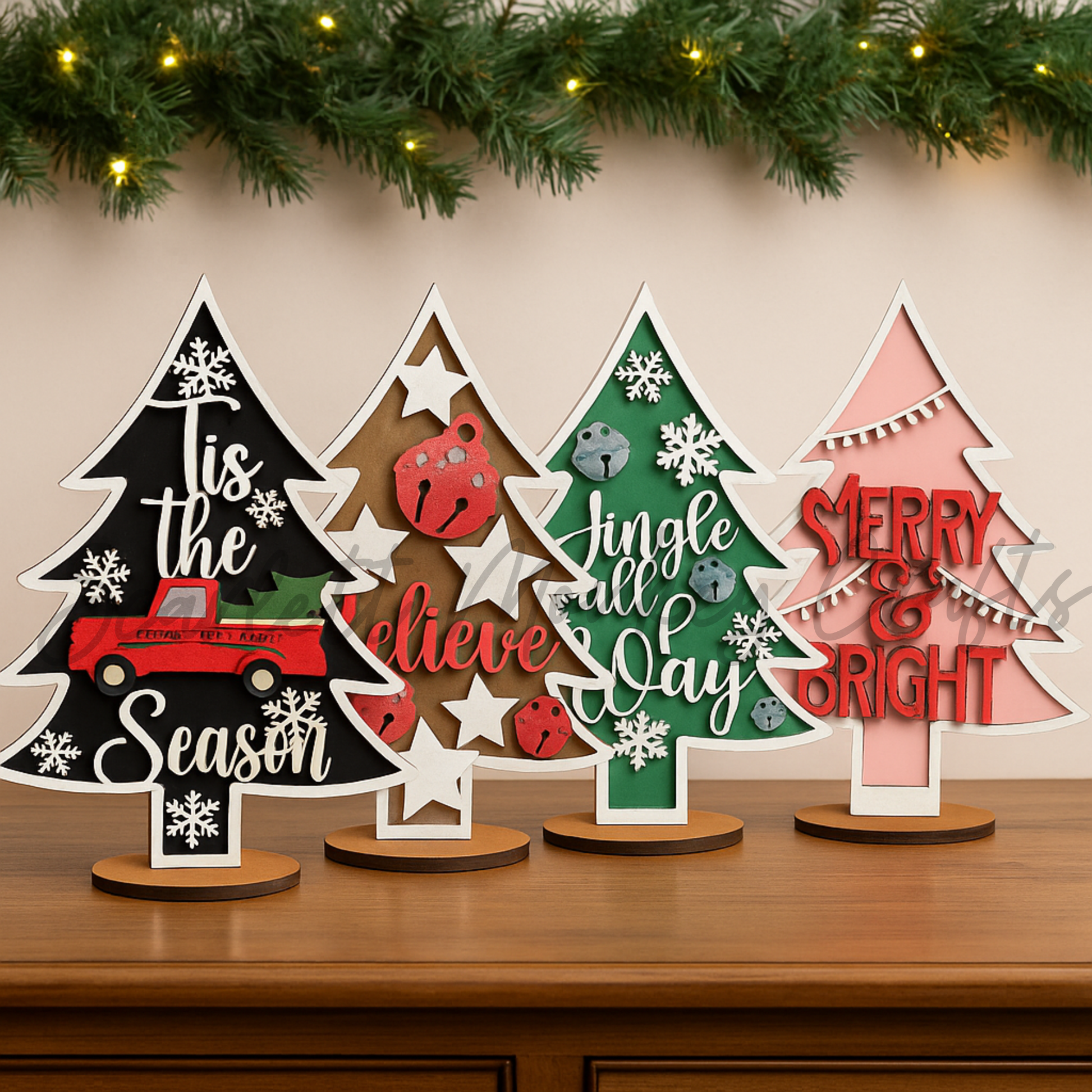 Standing Christmas Trees Set - Hand-Painted Holiday Decor